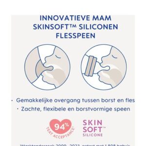 Approuvée par les bébés: 94 % des bébés acceptent la tétine MAM et sa surface SkinSoft™