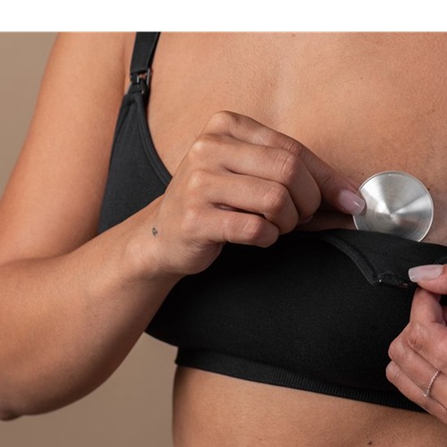 Fabriquées en argent pur 999, sans nickel, elles se portent entre deux tétées et forment une barrière protectrice naturelle entre le mamelon et les vêtements.